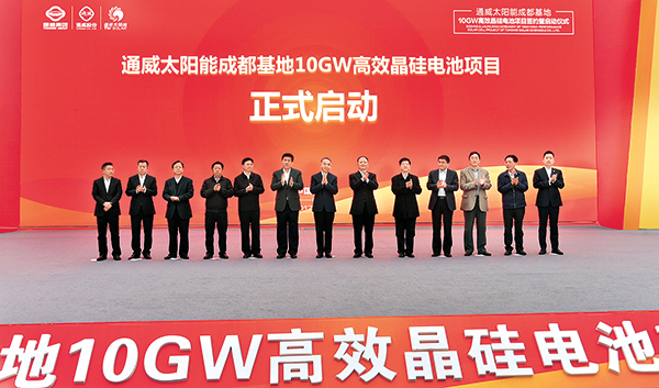 據了解,此次通威在成都、合肥兩地布局的20GW高效晶硅電池產能將以無人化生產線為主,建設智能化工廠、數字化車間、物流倉儲及相關配套設施,在成都和合肥兩個10GW的新項目各新增60條、共120條電池生產線。未來3-5年內,通威太陽能電池產能規模將超過30GW,銷售規模將超過300億元,成為全球最大、最具影響力的清潔能源公司,強勢助陣中國光伏產業發展。本次開工儀式吸引了新華社、人民網、四川日報、四川電視臺、華西都市報、成都日報、成都電視臺、成都商報、四川新聞網等20余家主流權威媒體深度聚焦。(詳細報道見《通威太陽能》專刊)
