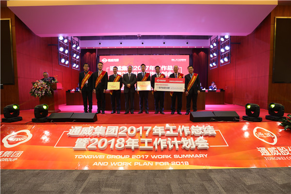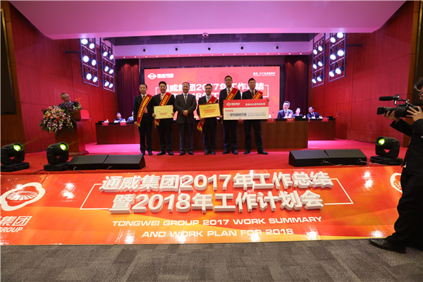 在通威集團2017年工作總結暨2018年工作計劃會上,集團年度表彰獎項——“通威集團董事局主席特別嘉獎”、“2017通威集團年度英雄團隊”、“2017通威文化建設十大標桿分、子公司”、“2017年通威集團年度榜樣”、“通威股份年度新銳獎”等獎項逐一揭曉。據悉,本次年度表彰,通威頒出了總計近百個獎項,年度獎勵總額超過了1.7億。如此大手筆重獎員工,再次彰顯了通威集團作為中國最優(yōu)秀民營企業(yè)代表的雄厚實力和強勁發(fā)展勢頭!
