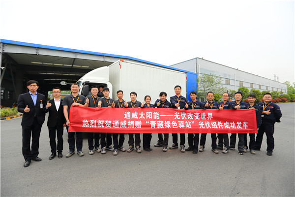 4月13日 本次用于捐贈“青藏綠色驛站”的光伏組件全部準備完畢,并在通威太陽能(合肥)有限公司成功發(fā)車。