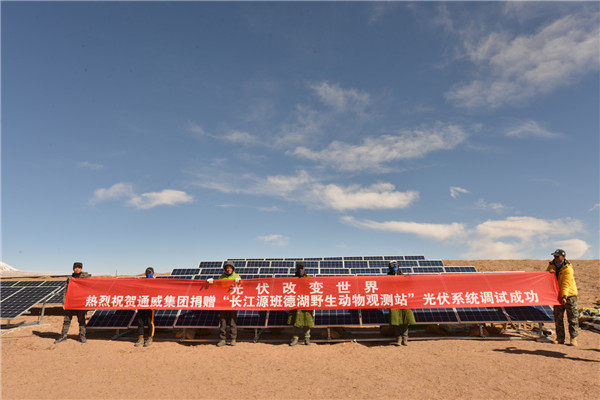 2019年4月10日通威集團捐贈“長江源班德湖野生動物觀測站”光伏系統調試成功