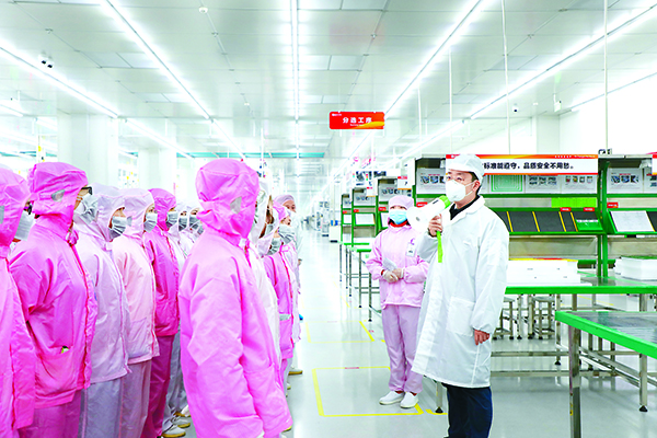 復工首日,通威股份董事長謝毅檢查通威太陽能車間防疫工作