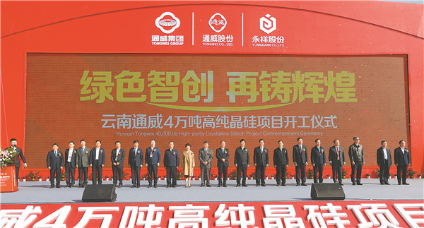 11月12日,云南通威4萬噸高純晶硅項(xiàng)目開工儀式在云南省保山市隆重舉行。在現(xiàn)場領(lǐng)導(dǎo)嘉賓的共同見證下,云南省人民政府副省長董華宣布云南通威4萬噸高純晶硅項(xiàng)目正式開工。