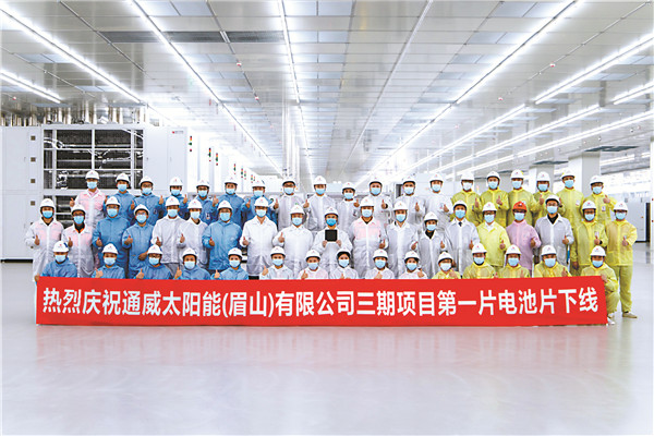 從設備進場到設備調試和安裝,再到首片下線僅用9天時間,通威太陽能眉山基地再次刷新紀錄