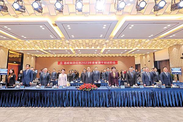 1月17日至29日,通威集團、股份管理總部及各板塊2023年度核心管理干部述職會先后召開。全國人大代表、全國工商聯(lián)副主席、通威集團董事局劉漢元主席出席會議,并對總部及各體系工作作重要指示。通威集團管亞梅董事長、集團禚玉嬌總裁,通威股份董事長、CEO劉舒琪,副董事長嚴(yán)虎,以及集團、股份總部高管團隊,各體系核心管理干部出席會議。