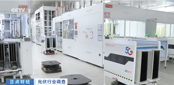 CCTV-2《正點(diǎn)財(cái)經(jīng)》欄目播出通威太陽能智能制造車間畫面