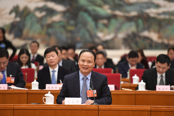 3月14日下午,十三屆全國人大一次會議四川代表團在京舉行全體會議,審議國務院機構改革方案。最高人民檢察院檢察長曹建明,四川省委書記、省人大常委會主任、代表團團長王東明,四川省委副書記、省長、代表團副團長尹力參加審議。全國人大代表、通威集團董事局劉漢元主席參加審議并發言。