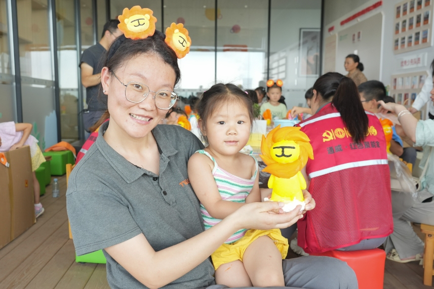 除了趣味橫生的猜詞環節,公司還巧妙地結合企業文化,組織開展了石膏陽光仔涂色活動。這一環節讓員工的家人和孩子們親身體驗到了通威太陽能蓬勃向上、充滿活力的企業文化。在創作過程中,孩子們不僅與家長們進行了親密的親子互動,還更進一步地了解了通威太陽能的深厚文化底蘊。