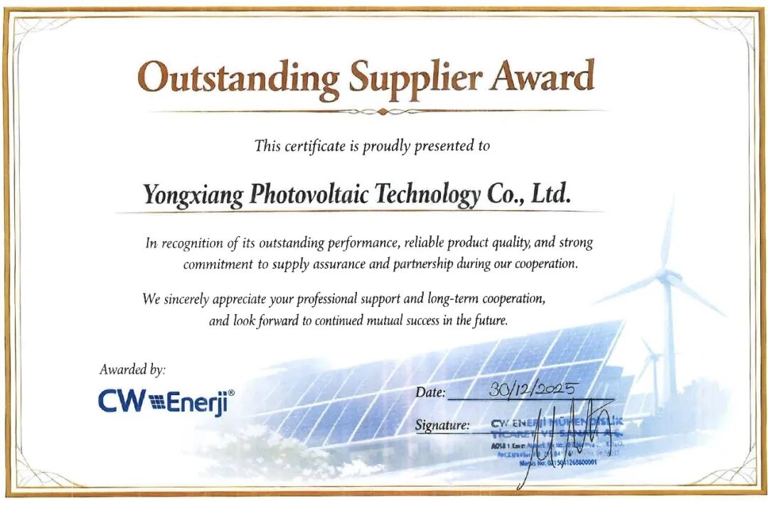 近日,土耳其CW公司授予永祥光伏科技年度優秀供應商獎,這份沉甸甸的榮譽,不僅是對雙方一年來風雨同舟、長期穩定合作的高度肯定,更是對公司卓越產品品質、高效服務水平與可靠履約能力的權威認可。