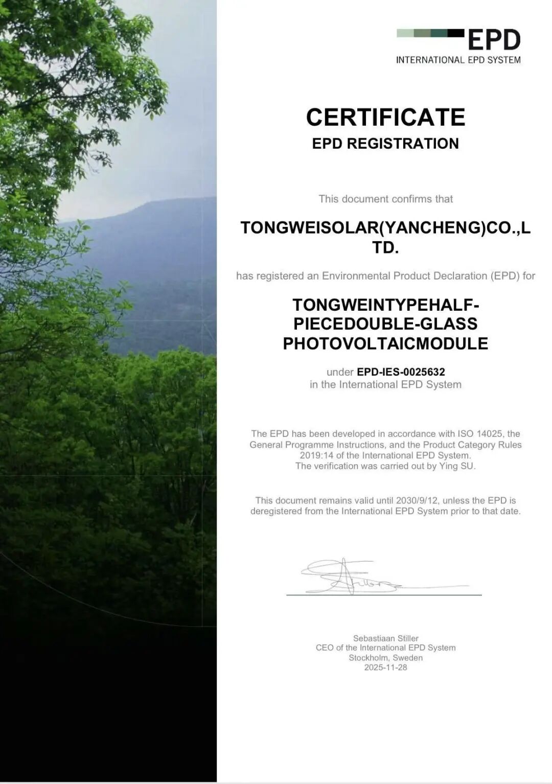 通威太陽(yáng)能科技鹽城基地榮獲國(guó)際EPD認(rèn)證證書