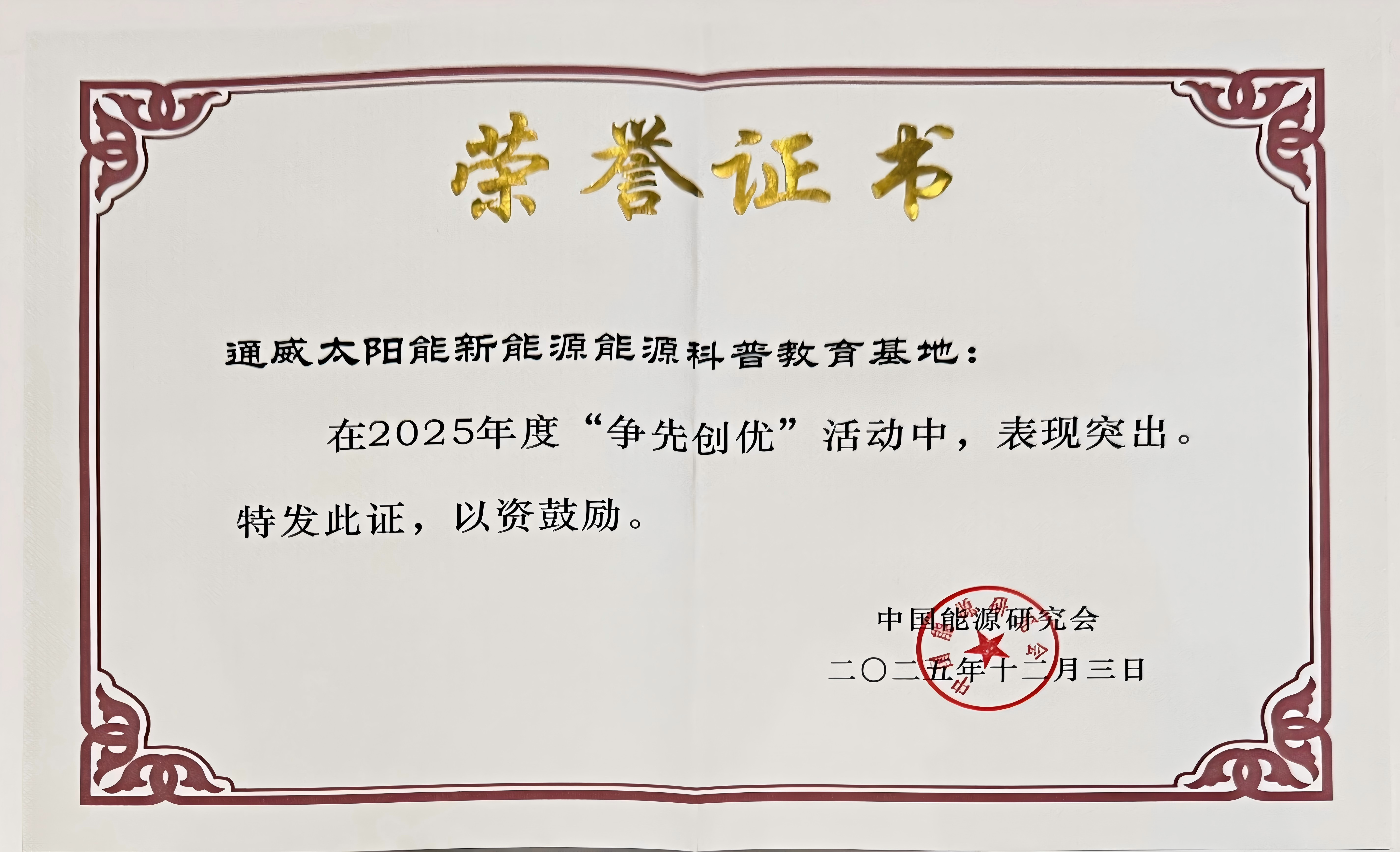 通威太陽能榮獲2025年度“爭先創(chuàng)優(yōu)”能源科普教育基地稱號