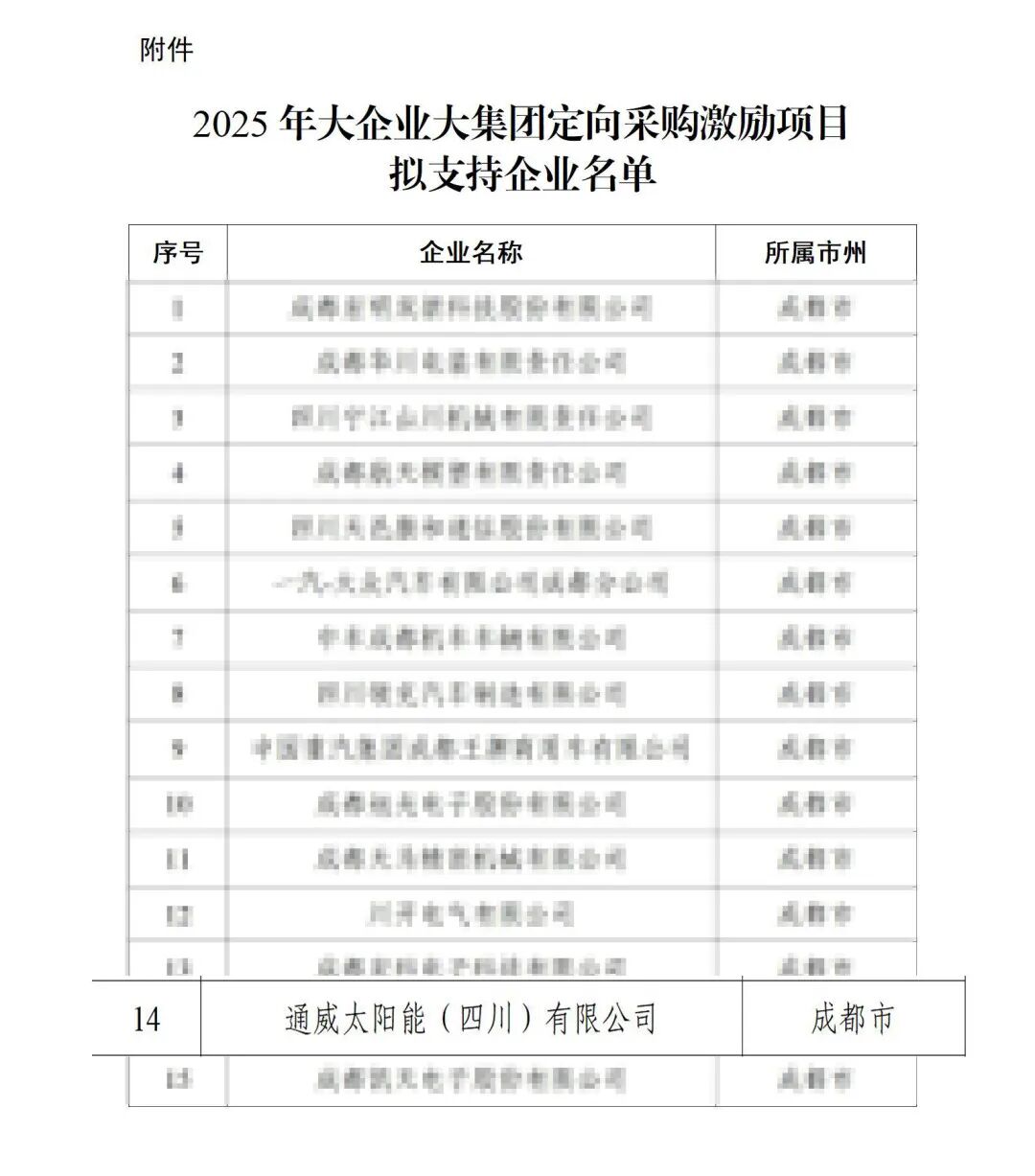 通威太陽能科技金堂基地順利入選2025年大企業大集團定向采購激勵項目支持企業名單
