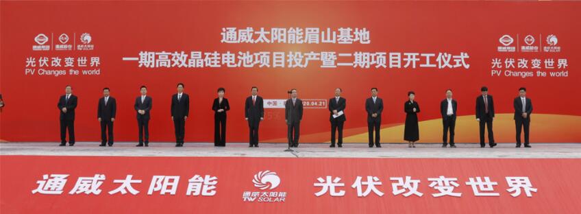 光儲億家:通威太陽能眉山公司一期7.5GW高效晶硅電池項目投產(chǎn)暨二期項目開工儀式隆重舉行