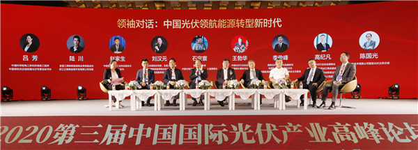 國(guó)務(wù)院原參事、中國(guó)可再生能源學(xué)會(huì)第七、八屆理事長(zhǎng)石定寰,中國(guó)光伏行業(yè)協(xié)會(huì)副理事長(zhǎng)兼秘書長(zhǎng)王勃華,中國(guó)有色金屬工業(yè)協(xié)會(huì)副會(huì)長(zhǎng)、硅業(yè)分會(huì)會(huì)長(zhǎng)趙家生,國(guó)家應(yīng)對(duì)氣候變化戰(zhàn)略研究和國(guó)際合作中心首任主任、中國(guó)能源研究會(huì)可再生能源專委會(huì)主任委員李俊峰,十一屆全國(guó)政協(xié)常委、全國(guó)人大代表、全國(guó)工商聯(lián)新能源商會(huì)執(zhí)行會(huì)長(zhǎng)、通威集團(tuán)董事局劉漢元主席,中國(guó)光伏行業(yè)協(xié)會(huì)理事長(zhǎng)、中國(guó)機(jī)電產(chǎn)品進(jìn)出口商會(huì)副會(huì)長(zhǎng)、全球太陽能理事會(huì)聯(lián)席主席、天合光能董事長(zhǎng)高紀(jì)凡,全國(guó)人大代表、中國(guó)光伏行業(yè)協(xié)會(huì)副理事長(zhǎng)、中國(guó)電源學(xué)會(huì)副理事長(zhǎng)、陽光電源董事長(zhǎng)曹仁賢,全聯(lián)新能源商會(huì)常務(wù)副會(huì)長(zhǎng)、正泰新能源總裁陸川,華為智能光伏業(yè)務(wù)總裁陳國(guó)光,海泰新能董事長(zhǎng)王永,圍繞著“中國(guó)光伏領(lǐng)航能源轉(zhuǎn)型新時(shí)代”主題展開領(lǐng)袖巔峰對(duì)話,就“‘十四五’光伏戰(zhàn)略發(fā)展規(guī)劃”、“全球光伏產(chǎn)業(yè)發(fā)展趨勢(shì)”、“光伏企業(yè)如何協(xié)調(diào)發(fā)展”、“AI、5G如何賦能光伏”等話題進(jìn)行智慧碰撞。