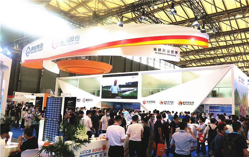 劉漢元主席觀展 在通威展臺,劉漢元主席仔細查看通威展示產品 劉漢元主席與曹仁賢董事長深入交流 劉漢元主席參觀華為展臺并合影留念 新品 展現光伏新能源技術創新實力 本次展會上,通威優質光伏產品吸引了眾多參展商駐足觀看。 通威產品吸引了中外參展商駐足觀看 在通威太陽能展臺,不時有參展商前來詢問。通威太陽能專注于電池片技術創新,不斷攻堅克難,本次通威太陽能單晶158.75尺寸、166尺寸、210尺寸疊瓦電池、SHJ等高效電池片精彩亮相,受到中外展商矚目。 眾多參展商詳情了解通威展臺產品 本次展會上展出的永祥股份高純晶硅產品,單晶占比率高達95%,產品純度達到99.999999999%,滿足下游N型產品質量需求,深得下游客戶的信賴和認可。 展商觀看沙盤模型,體驗通威“漁光一體”魅力 通威新能源終端海陸空無人巡檢設備首次亮相展會 產業鏈終端通威新能源“漁光一體”專區,沙盤模型全景展示“漁光一體”園區智能化養殖系統設施等。“無人機、無人船、無人車”海陸空無人巡檢設備首次集體亮相,吸引多批展商了解詢問。 通威展臺前人山人海,引爆展會! 通過本次參展,通威與行業伙伴進一步加強交流溝通,并再次展示了通威新能源產業鏈的強勁發展實力。借助本次盛會的東風,通威新能源產業鏈將再接再厲、創新發展,為中國光伏新能源事業高質量發展和綠色可持續發展而不懈努力。