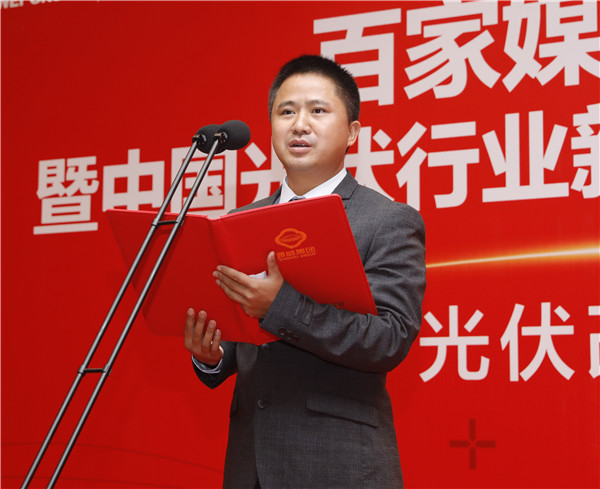 (聯盟發起媒體代表、執行秘書長、黑鷹光伏總編輯 李文友宣讀倡議書)