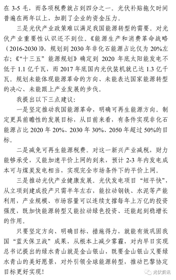 三是推動光伏產業健康發展。光伏發電項目“短平快”,從立項到建成投產只需半年左右,又能拉動鋼鐵、水泥等產能利用,產業規模、市場容量可以連續支撐每年上萬億的投資強度,既加快能源轉型又能拉動綠色投資、還能起到穩增長的作用。